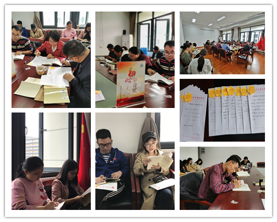会上,理论中心组成员及全体教工党员共读《习近平关于“不忘初心、牢记使命”论述摘编》第二章及第四章内容。在原原本本读原著后,全体党员静下心、忆初心,郑重书写自己作为教育工作者的初心--“不忘初心、脚踏实地、伸手摘星”、“为师为范、求真求是、传递正能量”、“为员工所需所想不断奋斗、不断努力,做好员工的‘勤务员’”。。。。。。一句句都是对入党宣誓庄严时刻的念念不忘、对初出茅庐时“敢叫日月换新天”壮志的念念不忘、对前进中奋起拼搏情怀的念念不忘。公司党总支书记周彩英指出,希望每一名教工党员通过“忆初心、写初心”时刻将理想信背负在身、镌刻于心,以“三省吾身”的态度,找差距、抓落实,认真做好每一项工作。
