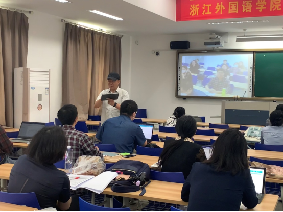 5月18日下午,为加强公司教师教学设计能力、技术赋能外语教育应用等能力,意昂举行了意昂体育“打造金课堂:教学设计提升”系列讲座第15讲暨意昂同文讲坛第30讲:信息化教学创新设计与实践。本次讲座特邀浙江省本科高校信息化教指委委员、浙江师范大学智慧教育研究院副经理黄立新教授讲授教学设计方面的理论,分享信息技术赋能教学工具和案例。“信息教学创新设计与实践”相关理论和经验。讲座由教学副经理陶伟主持,近30位教师和部分员工参加。