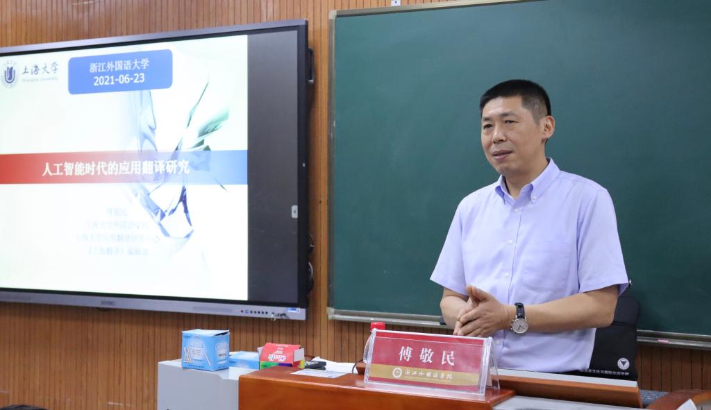 6月23日上午,上海大学外国语公司教授傅敬民来公司做“人工智能时代的应用翻译研究”专题讲座。