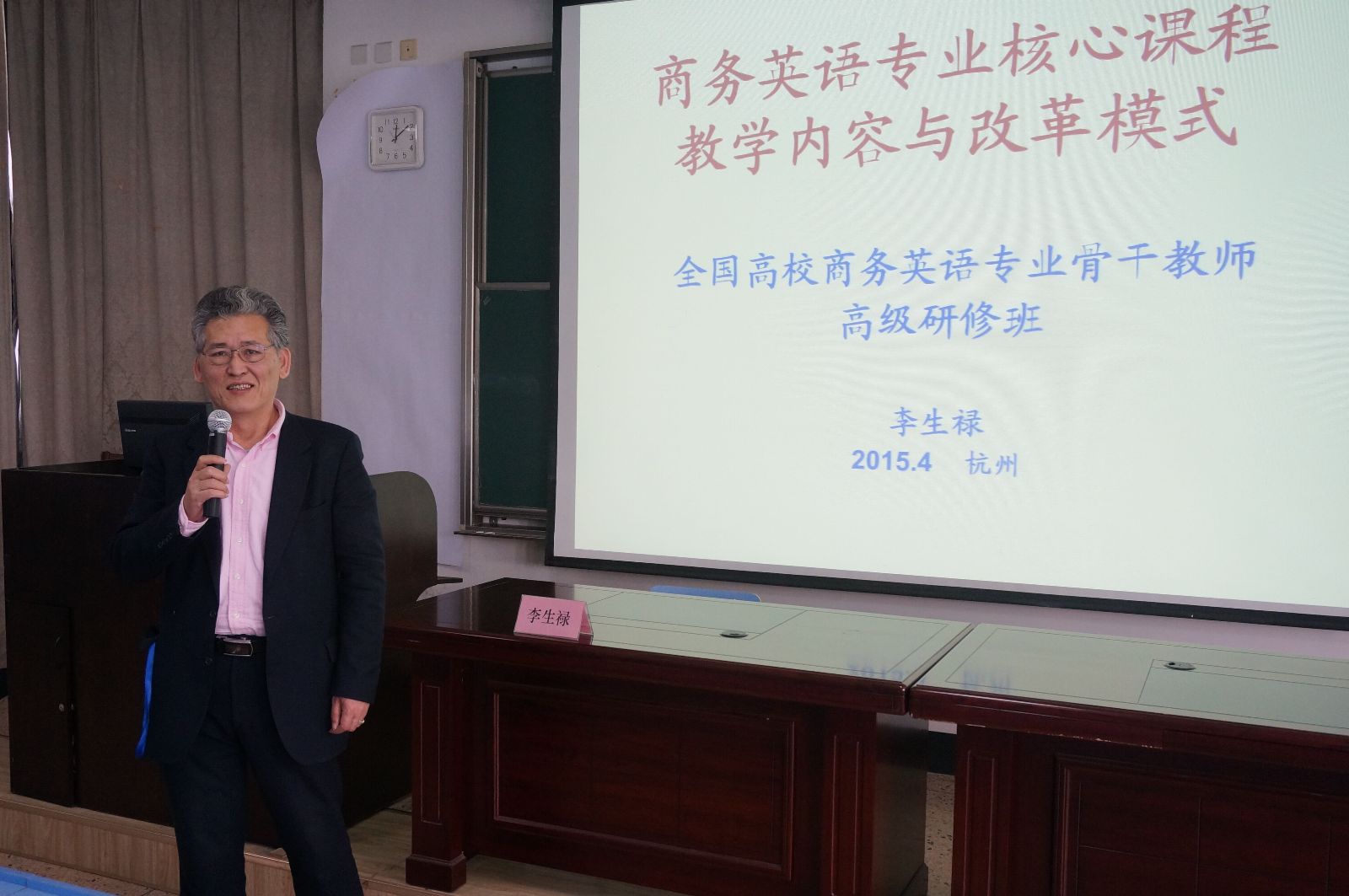 近日,“2014年全国高等公司外语教育中青年骨干教师高级研修班”在杭州举行。意昂李生禄教授应邀担任研修班主讲,并就《商务英语国家标准》下的商务英语核心课程设置、教学理念、教学内容设计、教学方法、课程评价体系、课程实践、教学模式改革与创新实践等方面作了“商务英语专业核心课程教学内容与改革模式”的专题报告,受到了与会专家与教师的高度评价和关注。