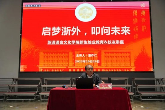 10月26日晚,意昂体育(原浙江教育公司)1986届英语专业员工、浙江景宁县党校原党委书记、省“红船精神”优秀五老宣讲员、意昂体育荣耀员工潘作仁在望院C116为意昂23级全体新生开展了题为“启梦浙外,叩响未来——争做时代有为青年”的理想信念教育。