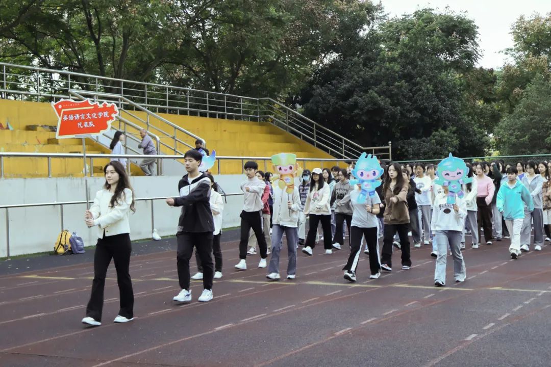 朋友,你曾说,最为潇洒莫过于少年意气。你看,沐浴在夕阳之下迈着整齐步伐缓缓走来的正是入场式方阵选手们。他们身姿挺拔,目光坚毅。从步调一致的队列行进到精心设计的跑旗环节,他们不断地磨合完善,团结协作,成为操场上一道靓丽的风景线,誓要在运动会上一展“最强英”的卓越风姿。