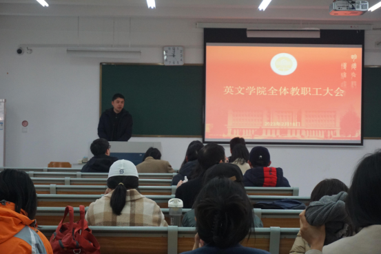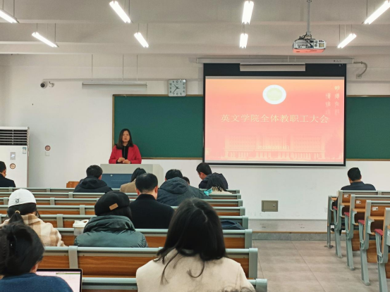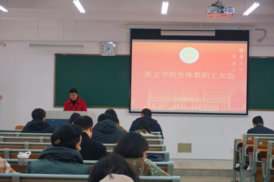 郑淑贞表示,新的一年要决战决胜“申硕”工作。同时,要坚持做有组织的科研,继续深化学术交流,办好公司的“同文讲坛”,做好具有英文特色的社会服务工作。她号召老师们积极申报各类科研项目,尤其是高层次项目,并踊跃参加公司的各类学术会议。