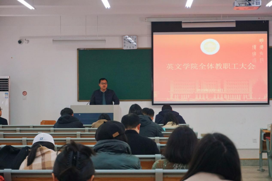 张豫晋首先通报了2023届毕业生就业工作情况,指出尽管本年度就业工作起了一个好头,但是就业形势仍然严峻,要进一步做好就业服务与动员工作;其次,对前期亚运志愿者选拔工作做了回顾,号召老师进一步加强指导,帮助员工提升语言能力和志愿服务水平,确保出色完成亚运志愿服务工作;最后,对班风建设提出了要求,希望各班主任,关注员工情况,定期召开班会。