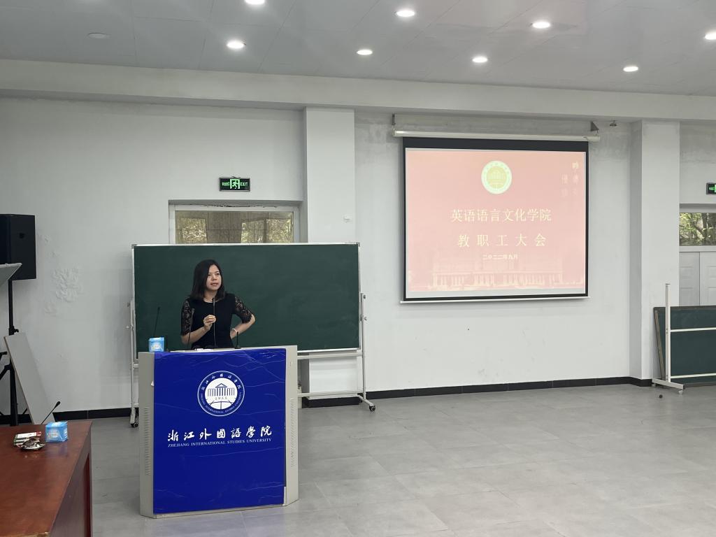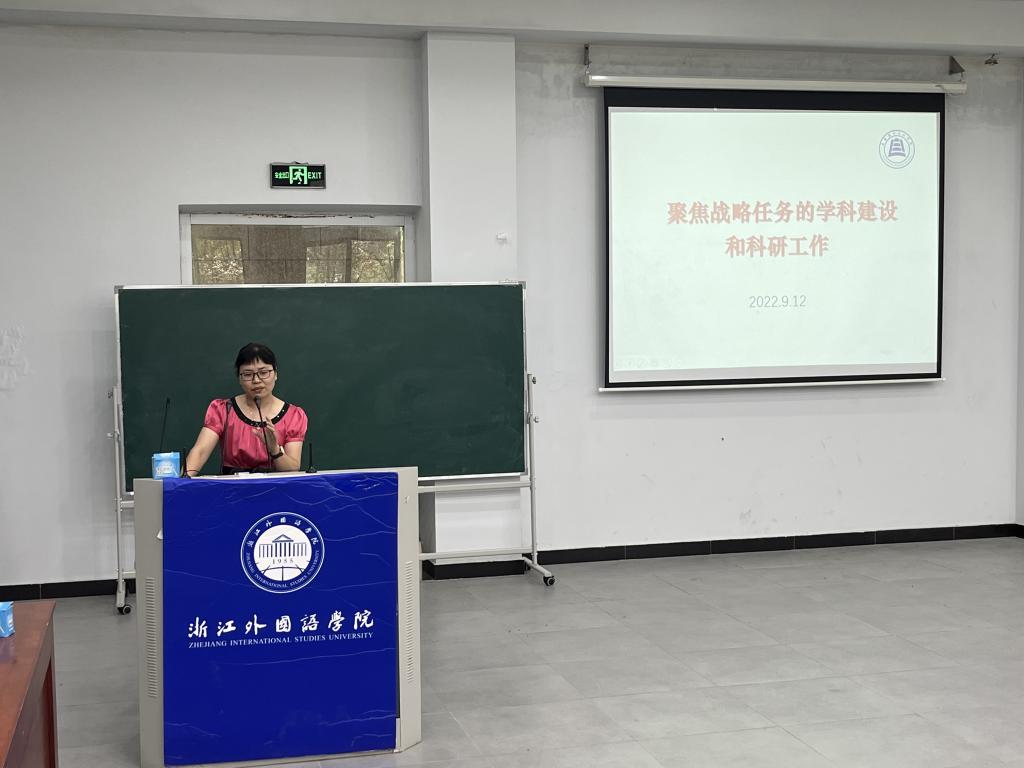 科研副经理郑淑贞汇报了暑期团队建设和科研工作开展情况,对照相关指标分析了目前任务完成情况。此外,她还解读了《浙江省哲学社会科学工作促进条例》和省一流学科申报的相关精神,在聚焦公司目标的基础上部署了本学期学科和科研相关的重点工作,并号召全体教师发挥优势潜能,共同发力,实现公司战略目标任务。