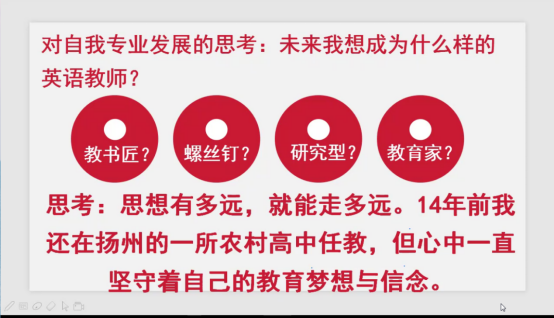 最后,刘老师和大家分享了成为一名研究型教师的意义。鼓励同学们把自己的声音带给更多的人,促进员工核心素养发展,成就赋权同行教师,对社会、对国家教育事业奉献自己的力量。