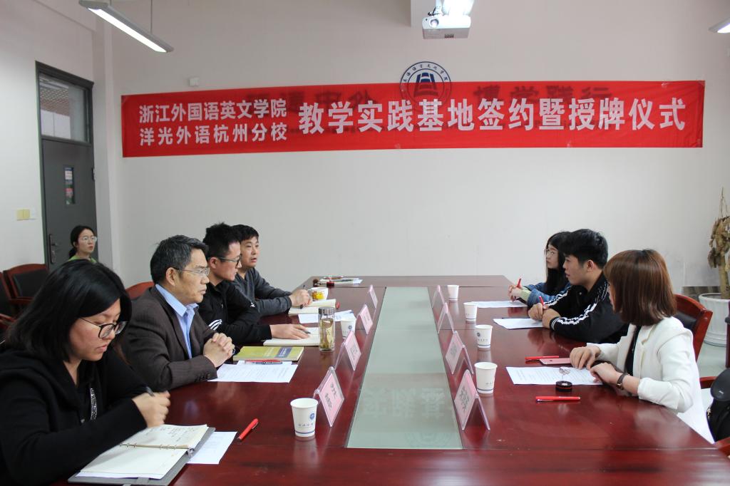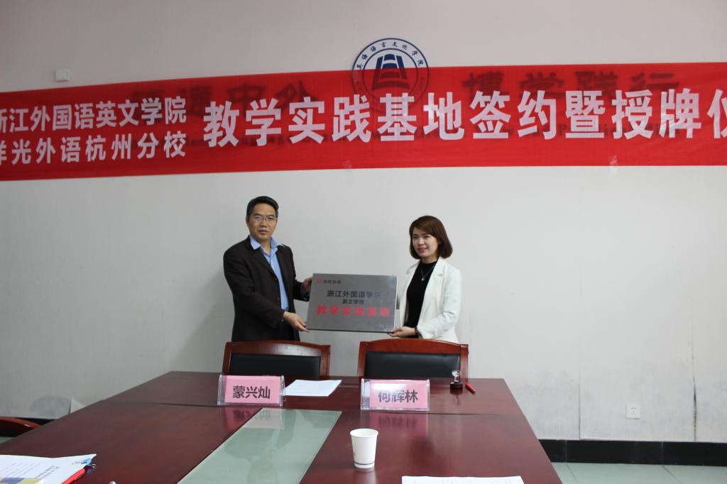 近日,意昂与洋光在线教育科技有限责任公司杭州分公司举行教学实践基地签约仪式,双方单位负责人参加了签约仪式。