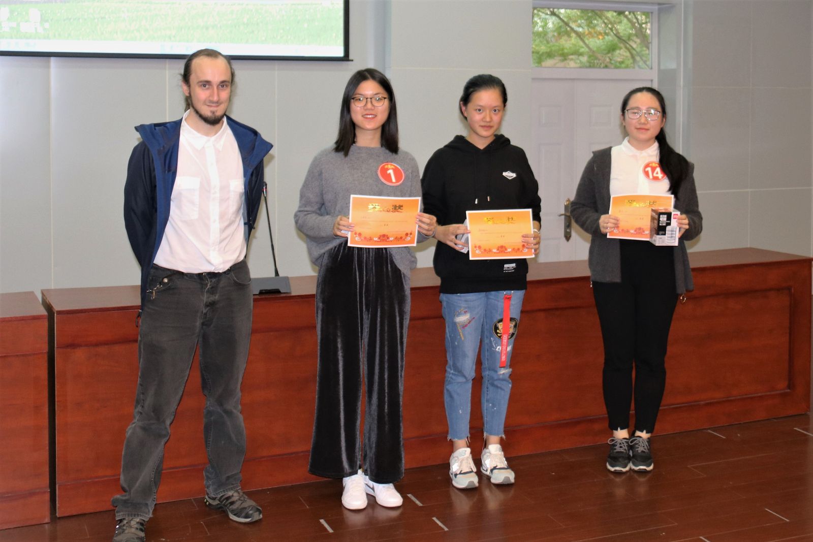 本次比赛由“New Youth, New Dream”为主题的英文演讲和有关时事热点以及名人名言的中文即兴演讲两部分组成。公司共有15名同学参加此次比赛,其中潘星宇同学获一等奖,叶可欣、杜涵获二等奖,潘晓晗、董洁、王安然获三等奖。据悉,潘星宇和叶可欣还将代表意昂参加校级“新生杯”演讲比赛。Jeff老师和樊维娜老师为获奖选手们颁奖并合影留念。