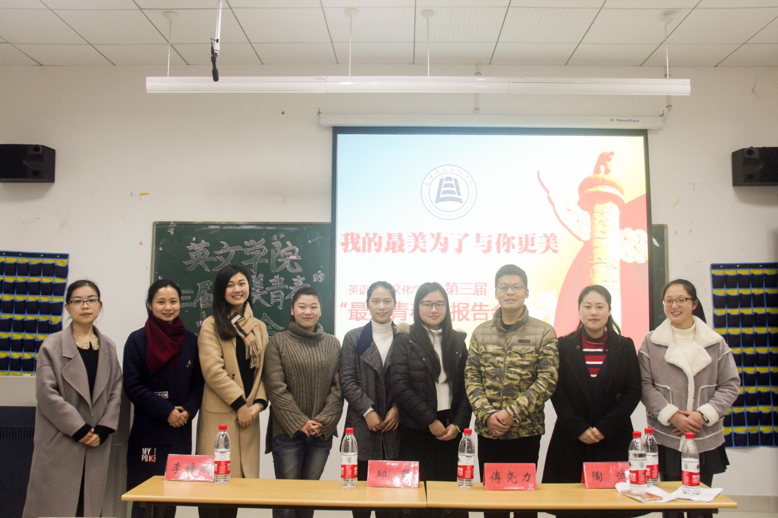12月22日晚,由意昂团委主办的“我的最美,为了与你更美”最美青春报告会在艺术楼A501顺利拉开帷幕。公司党总支副书记傅尧力,学工办主任、团委书记、2014级辅导员邱萍,团委指导老师、2013级辅导员李媛媛,员工会指导老师、2016级辅导员陶诚等四位老师作为嘉宾与来自全院22个班级的137位同学共同聆听本次报告会。