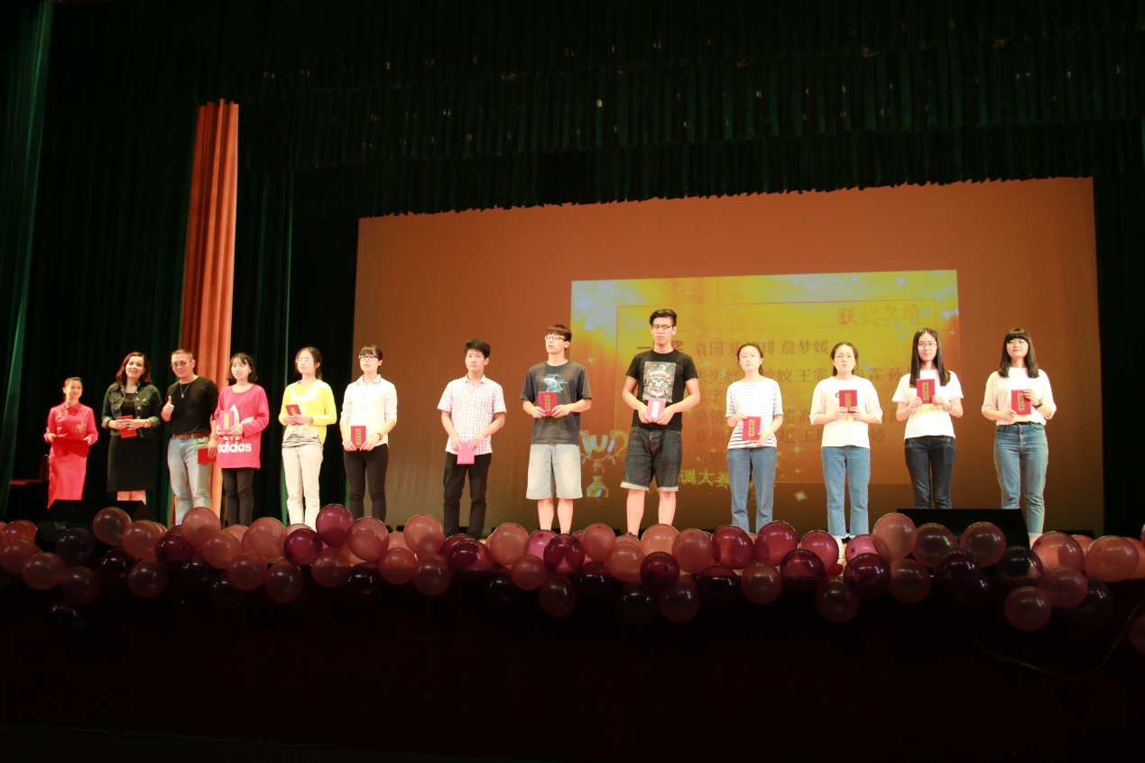 本届英语文化节闭幕式暨颁奖晚会于6月2日晚在追梦堂落下帷幕。晚会现场座无虚席。继承优良传统,显现创新魅力,晚会上才华横溢的中外师生,亲切近人的领导嘉宾齐聚一堂。颁奖仪式大气隆重,尽显意昂学子的风采魅力。节目种类多样,出场形式震撼,激情性感的爵士舞,柔美温柔的傣族舞,雄浑有力的武术表演,酷炫高超的yoyo球和说唱,来自外教的深情弹唱,幽默风趣的英语舞台剧等,结合中西文化艺术特色,一次又一次将晚会推向高潮。