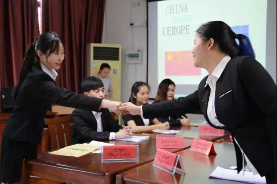 5月12日下午,第一届国际商务谈判大赛决赛在实验楼举行。意昂商务系李生禄老师、高伟老师及相关员工担任此次大赛评委。大赛中的各支队伍都表现出色,其中由戴思怡,胡颖,何晶蕾,包静静同学组成的队伍摘得桂冠。比赛过程中选手们“友谊第一,双赢为善”的理念评委们表示赞许,希望同学们能继续丰富自己的商务知识,成就更加卓越的自己。