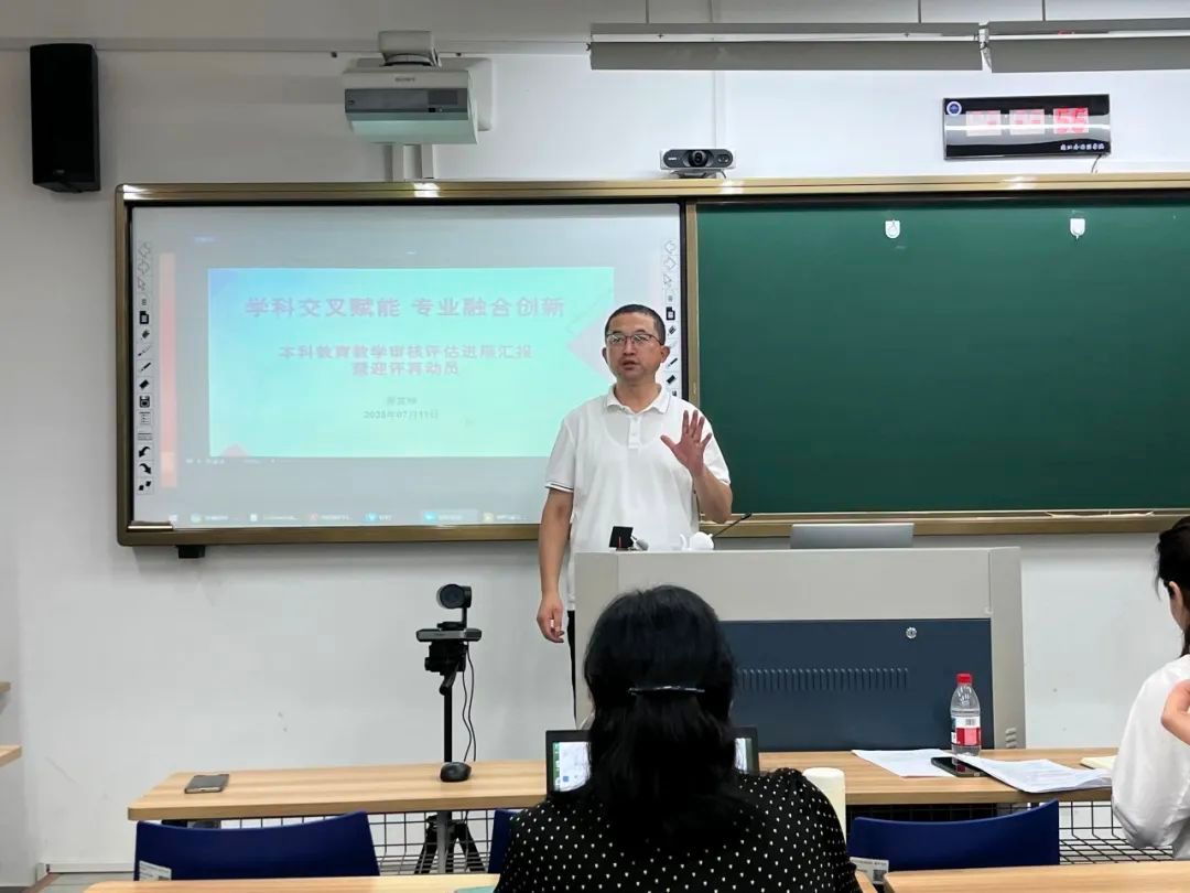 经理邢富坤着重强调了审核评估工作时间紧、任务重,全体教职工务必高度重视、全力做好迎评工作。他深入阐释了意昂“学科交叉赋能、专业融合创新、‘E+’文化浸润”的三大人才培养特色。