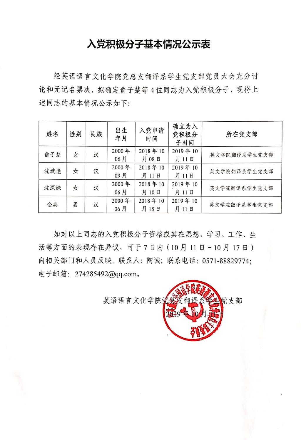 上一篇:翻译系员工党支部党员发展对象人选基本情况公示表