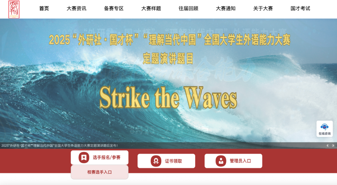 打开“外研社·国才杯”“理解当代中国”官网网址https://ucc.fltrp.com/,点击校赛选手入口