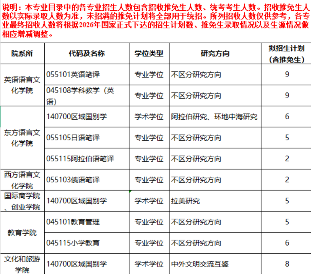 集团学科专业特色鲜明,办学综合实力较强,逐步形成以区域国别学为引领、以外国语言文学为基础、以教育学、工商管理学、中国语言文学、应用经济学等为支撑的学科体系。2026年公司全日制硕士研究生招生覆盖区域国别学1个一级学科以及翻译、教育2个专业学位类别。