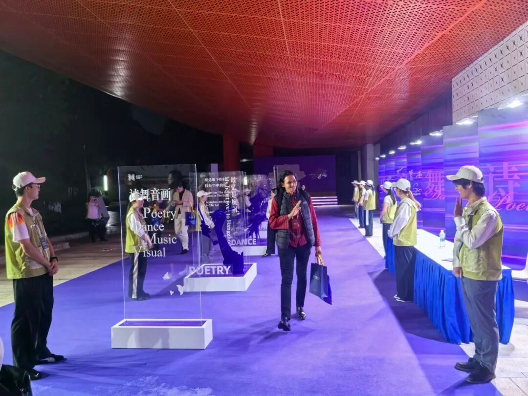 “那一刻,我不仅是志愿者,更是良渚文明与世界共鸣的见证者。”在梦栖小镇的诗舞音画艺术雅集现场,23英师1班的雷欣怡完成了她最难忘的一次志愿经历。她在后台协助表演秩序,却被台上那一幕深深震撼——青年舞者以舞演陶,《陶问》复现了良渚先民制陶的情景;法国小提琴家的旋律与之交织成动人的文明对话。