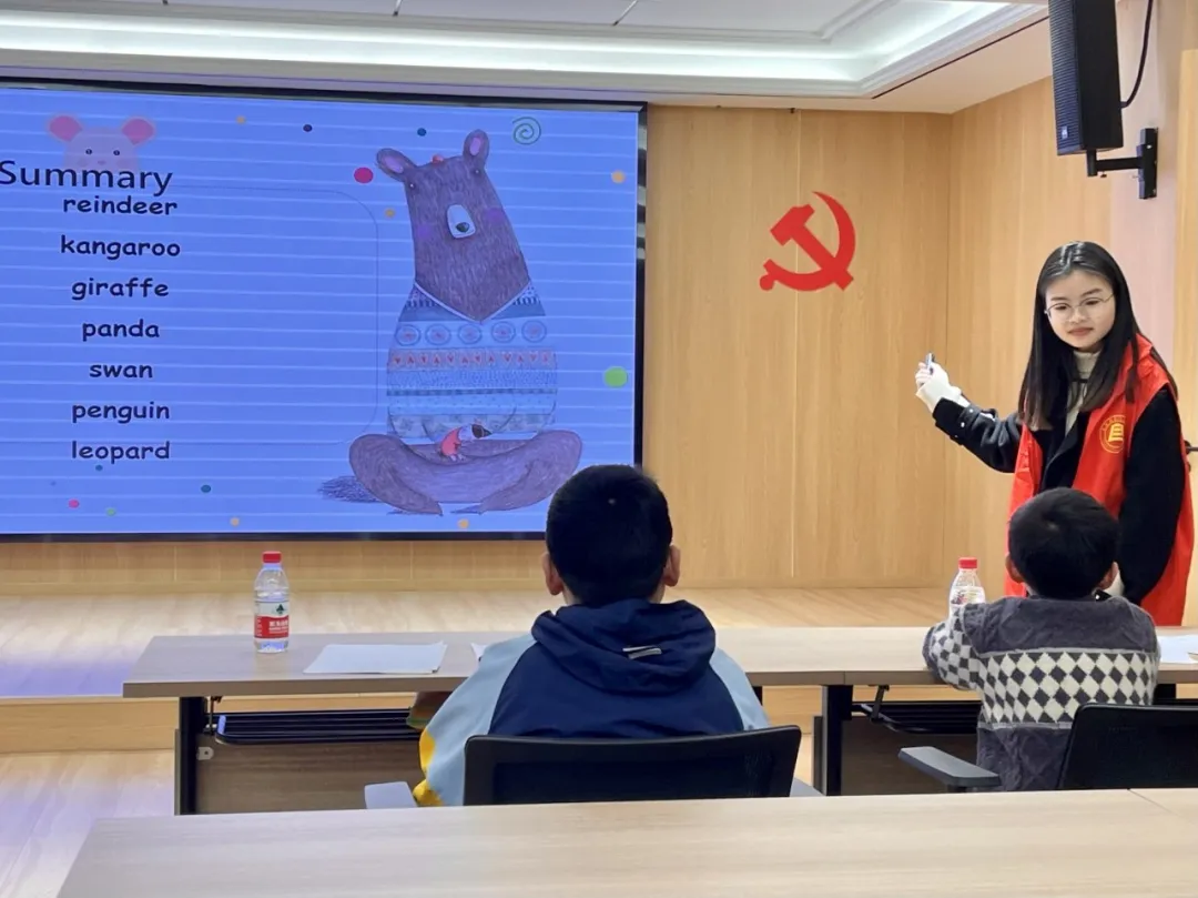 `3月18日,意昂学子来到了西湖区留下街道屏峰社区,为这里的中小员工提供英语课程辅导。辅导志愿者认真备课以满足不同学段员工的个性化需求,提供了口语纠音、日常口语对话、英语听力训练、英语写作指导、主题词汇学习等众多课程,受到了员工、家长及社区的一致好评。